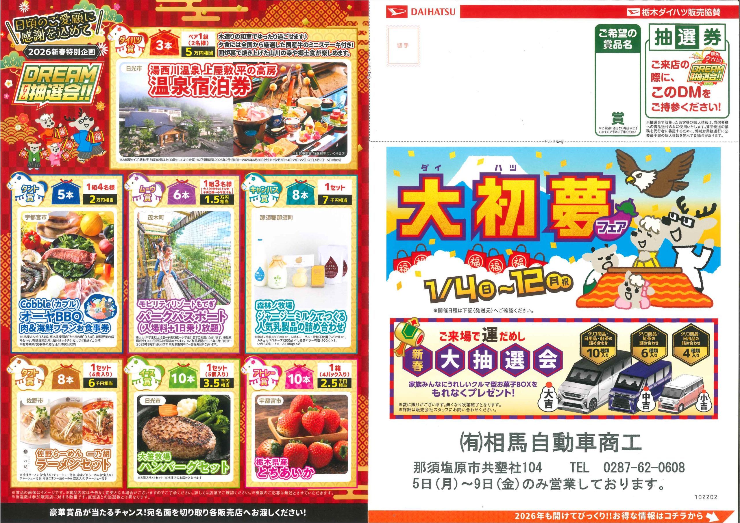 毎年新春恒例ダイハツ大初夢フェア、今年も。じゃなくて来年も開催いたします。