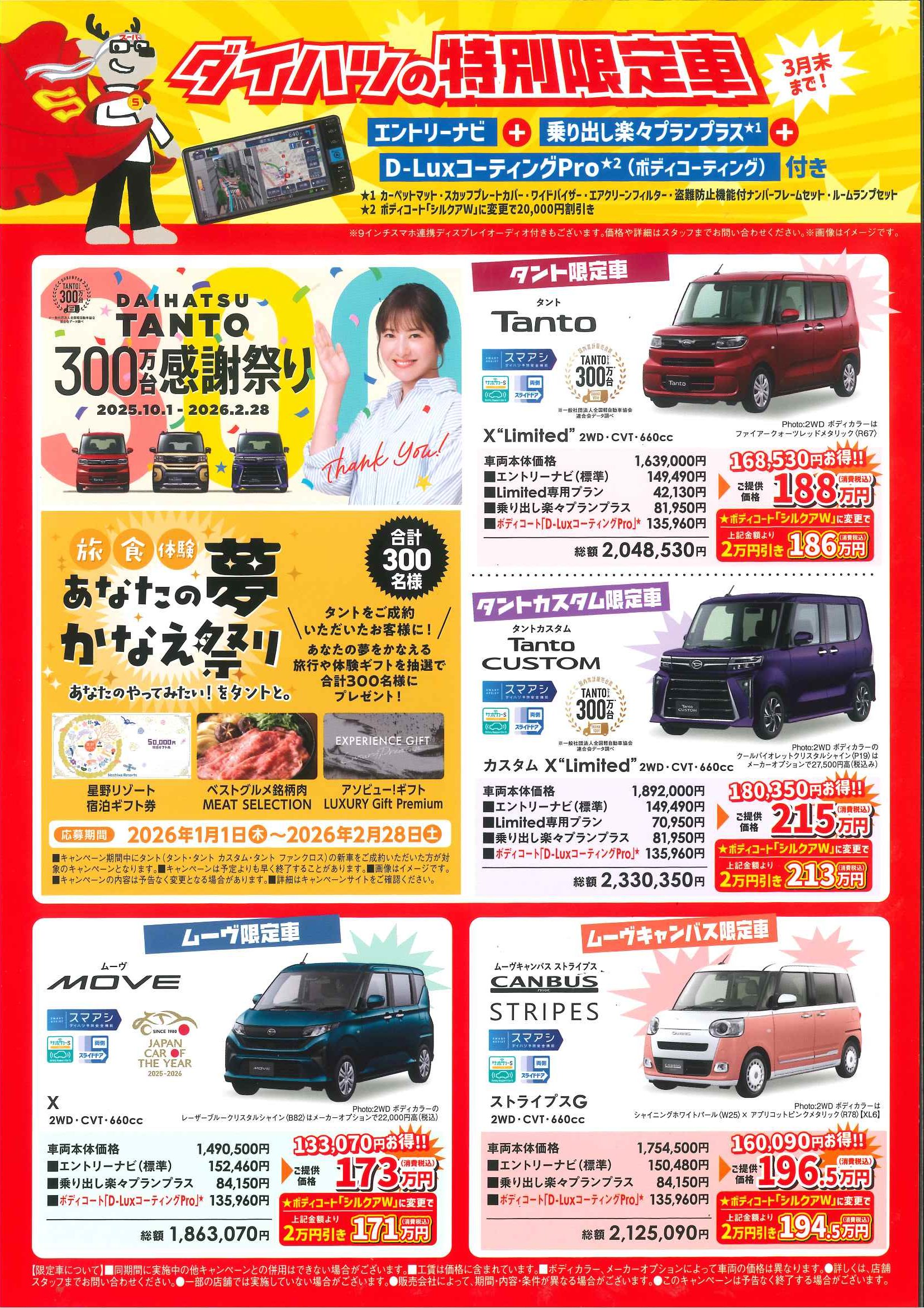 ダイハツの決算なので車を買ってくださいというフェアです。